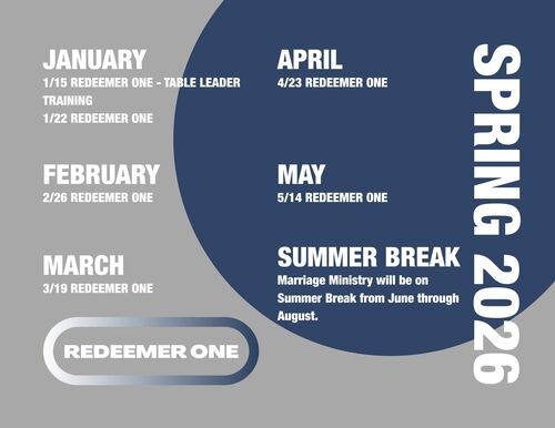 Our marriage ministry exists to point married and pre-married couples to the Author of marriage in order to grow in their relationship with Jesus Christ as they grow together as a couple. With a focus on hope and joy, Redeemer | Marriage exists to help engaged couples prepare for marriage, newlyweds get established in marriage, and married couples grow together as one in Christ. We provide opportunities for couples to enrich their marriages and, in seasons, to restore their marriages.